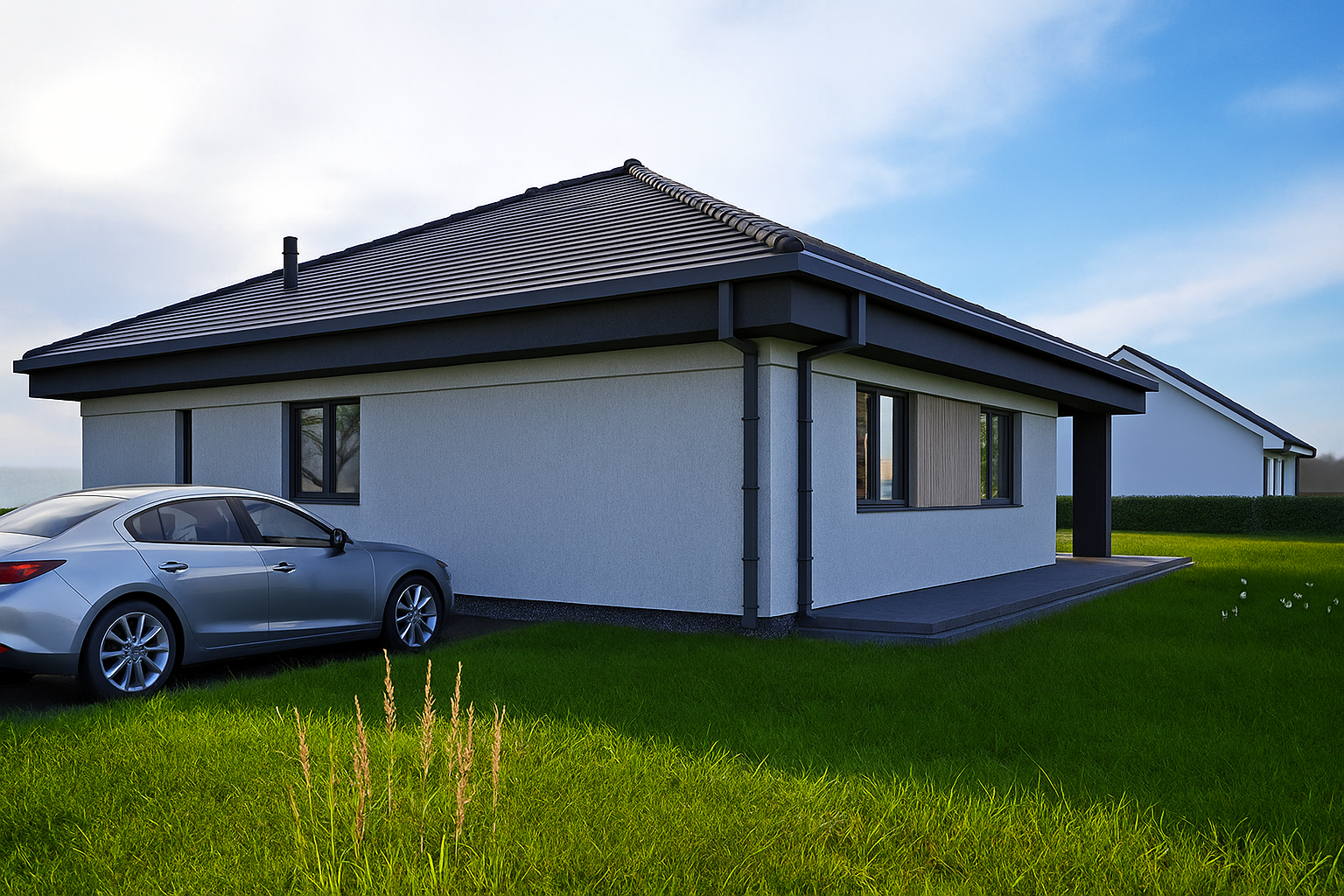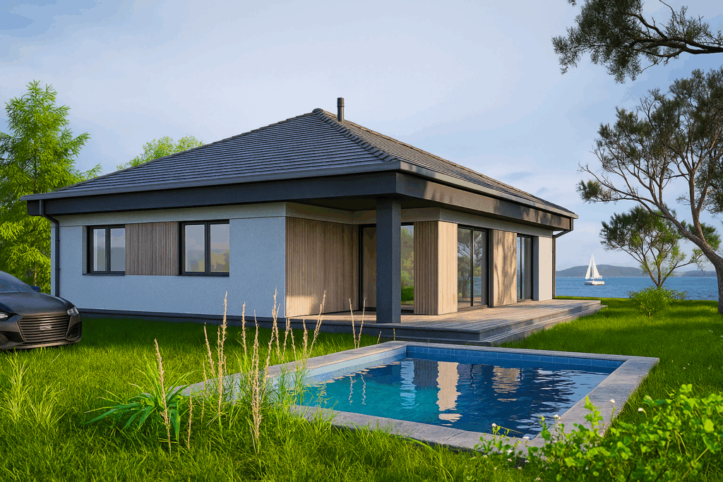 Elegantan četverovodni krov, kompozitna obloga bez održavanja i antracit aluminijska stolarija obećavaju trajan stil uz minimalno održavanje.