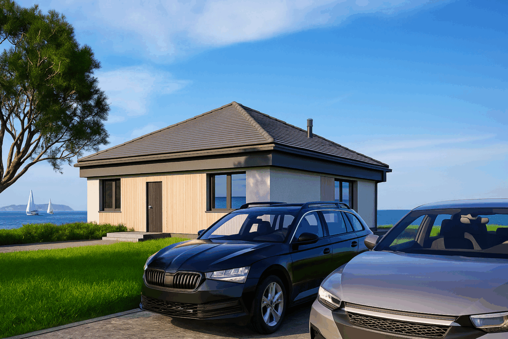 S prilazom za više automobila i fleksibilnim planom s dvije spavaće sobe, ovo obalno skrovište po principu “ključ u ruke” služi i kao unosan smještaj za odmor.