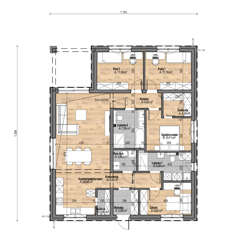 5. Kuhinja + Blagovaonica + Dnevni boravak: 39,66 m²
