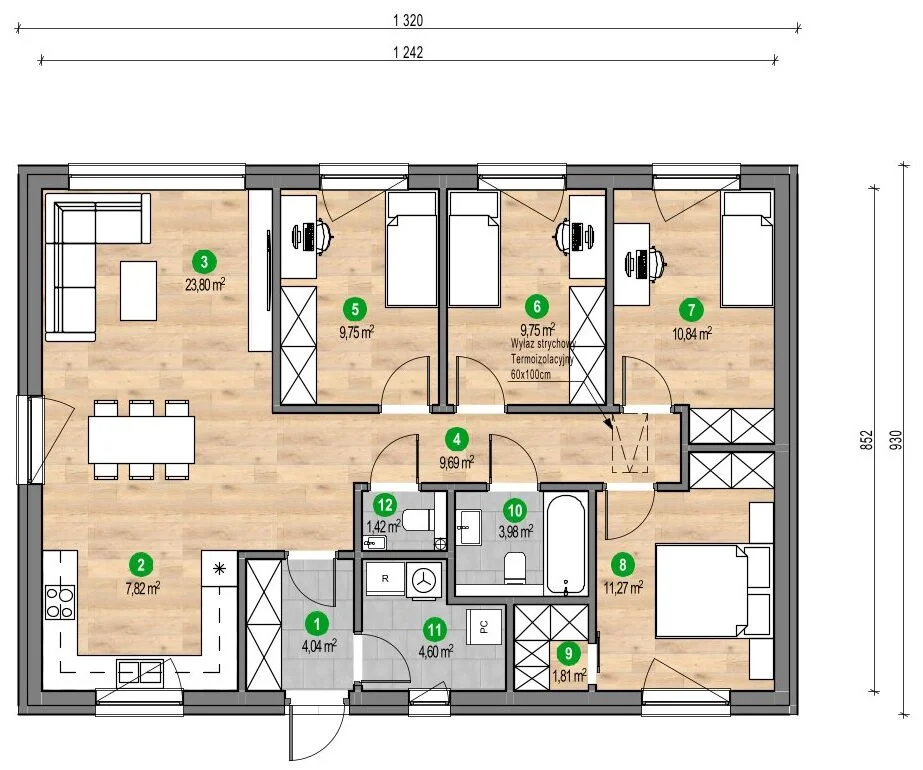 3. Dnevni boravak + blagovaonica: 23.80 m2