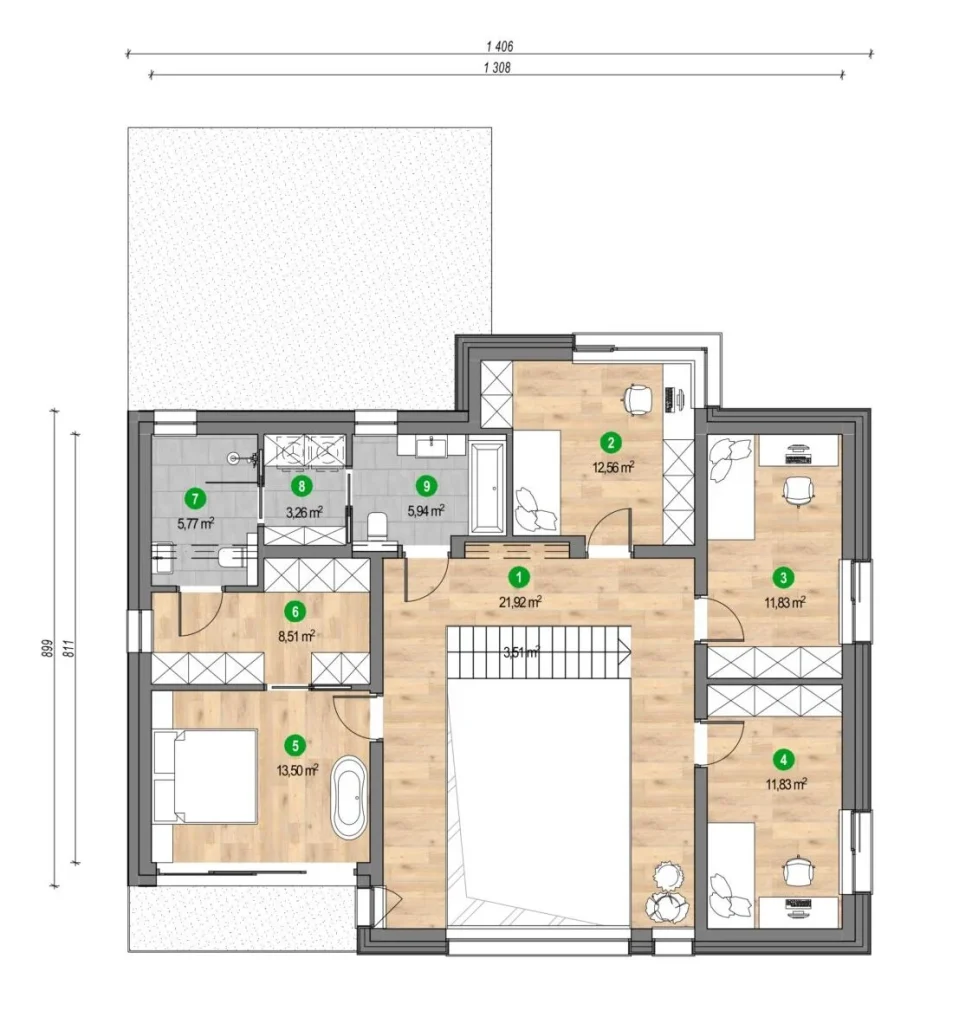 • Komunikacija: 21,92 m2