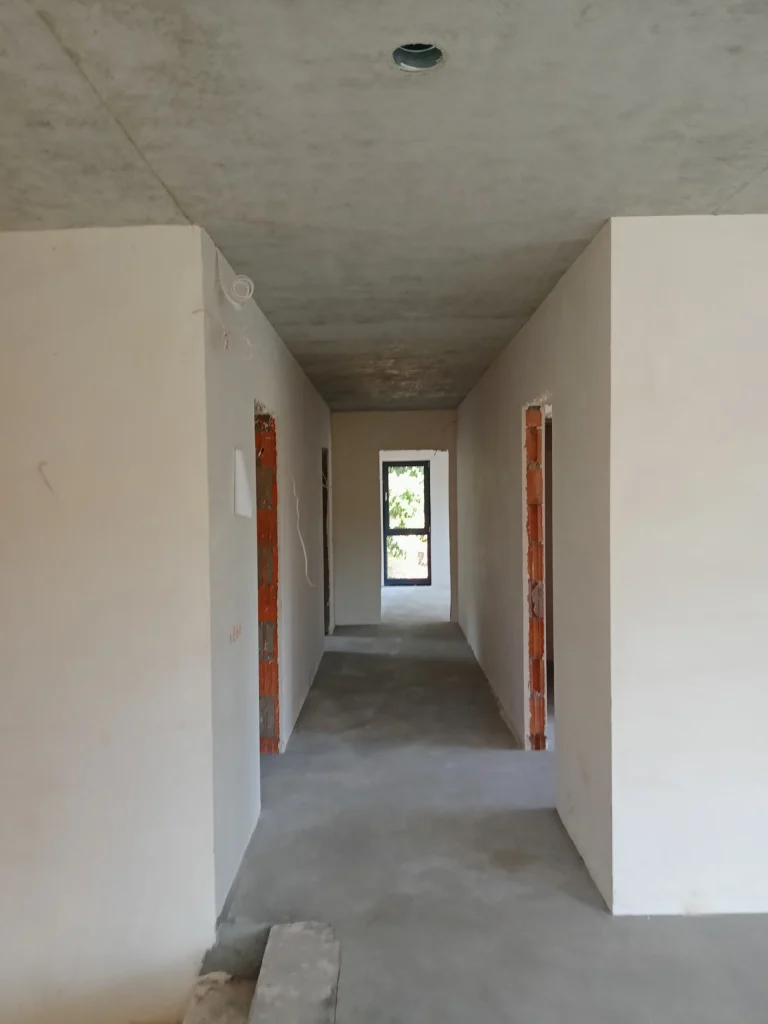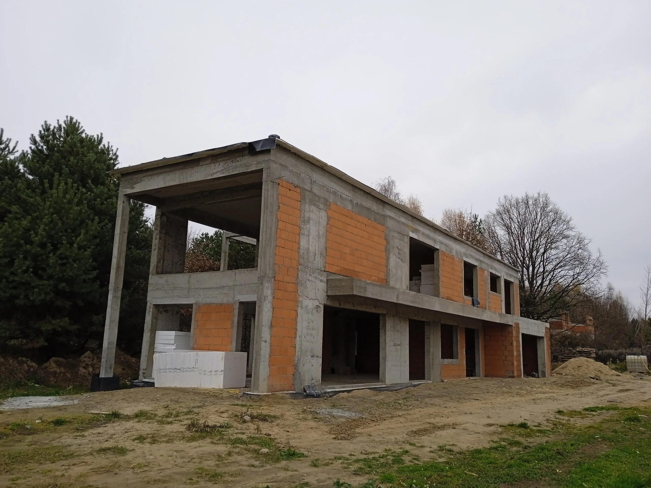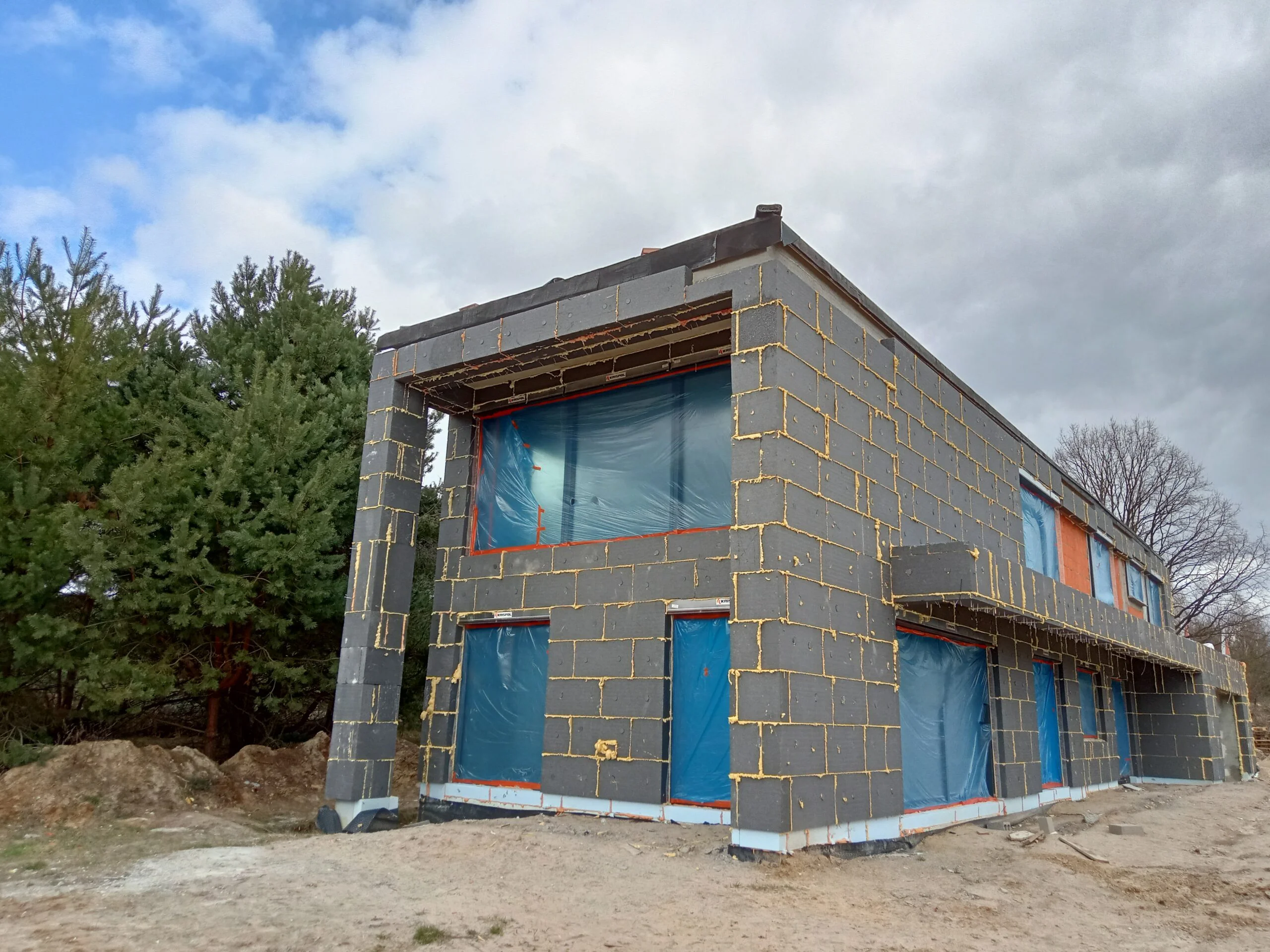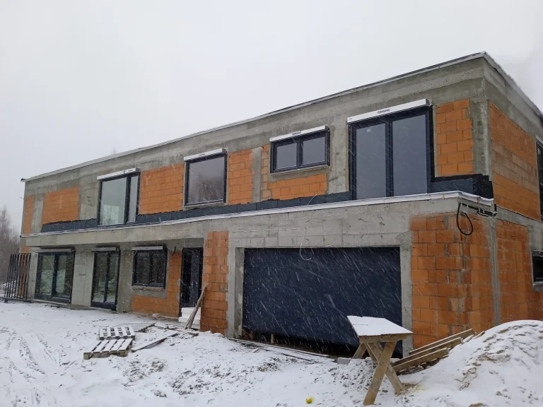 329 m2 Kuća podignut na tradicionalan temelje, taj je, pojačan podnožja i zaklada zidovi, sa 15cm debeo Aqua polistiren izolacija. Zidovi su izrađeni od keramičkih blokova, dok je strop monolitni armiranobetonski. Krov je ravan.