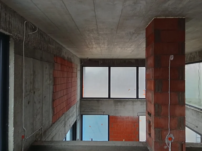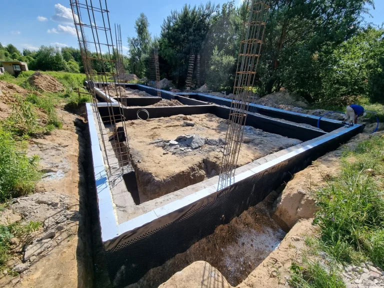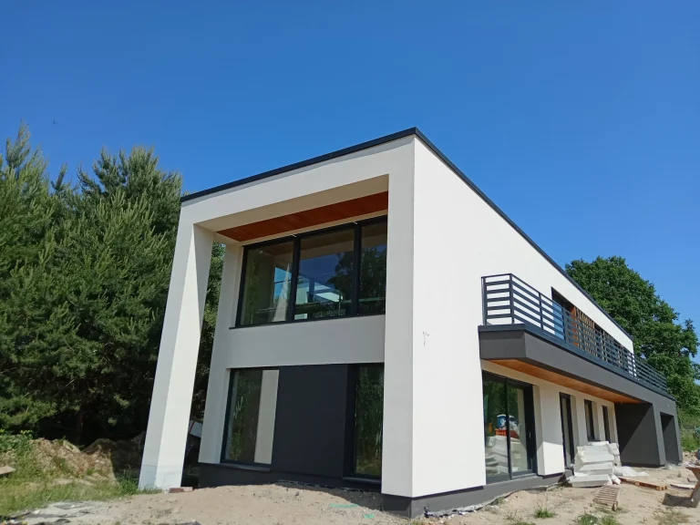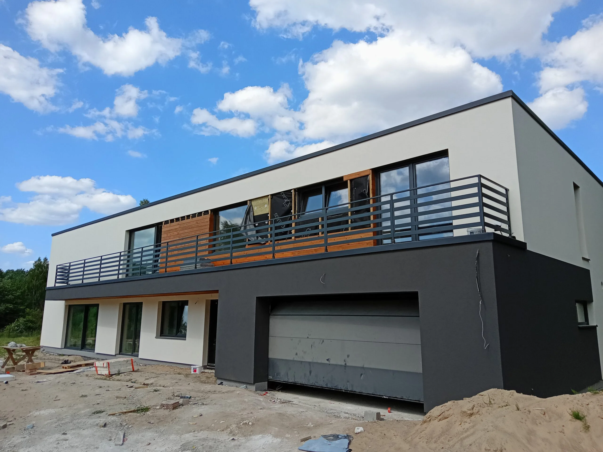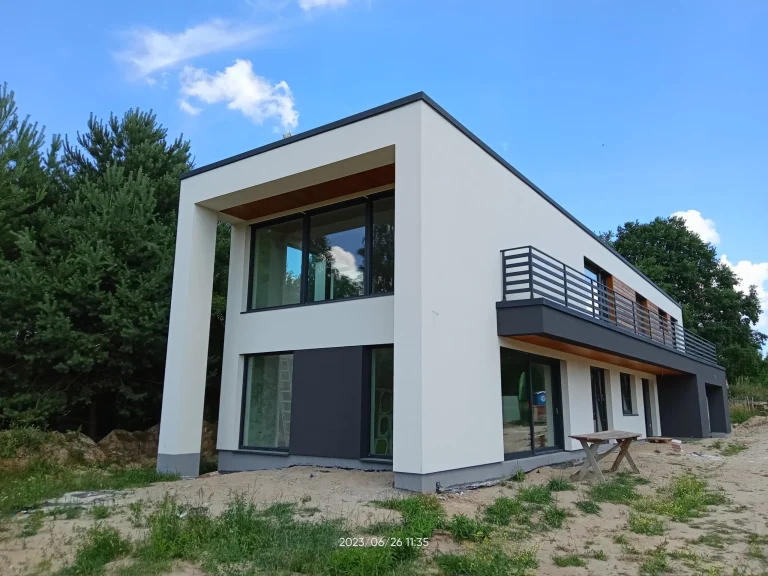 329 m2 Kuća podignut na tradicionalan temelje, taj je, pojačan podnožja i zaklada zidovi, sa 15cm debeo Aqua polistiren izolacija. Zidovi su izrađeni od keramičkih blokova, dok je strop monolitni armiranobetonski. Krov je ravan.
