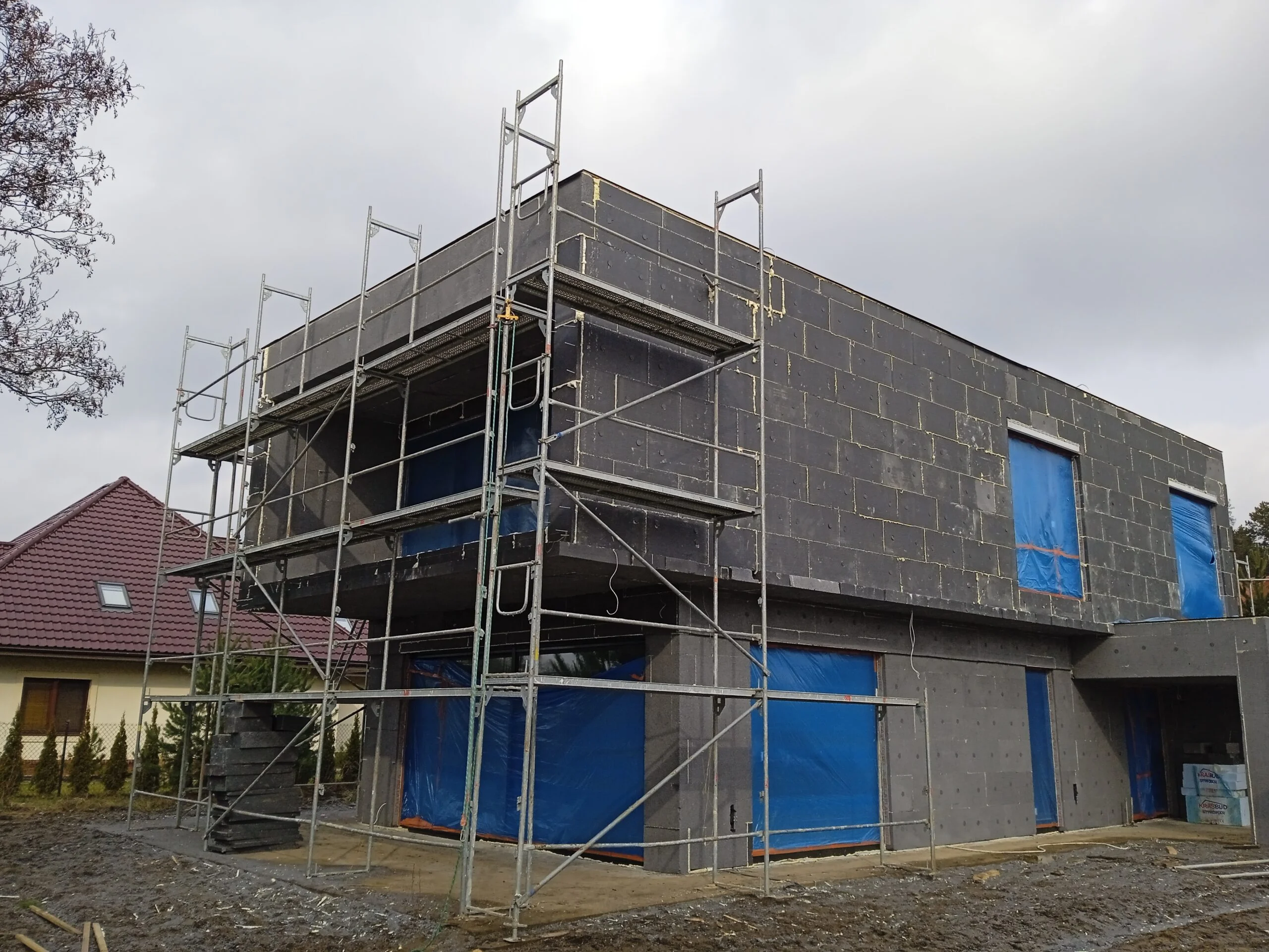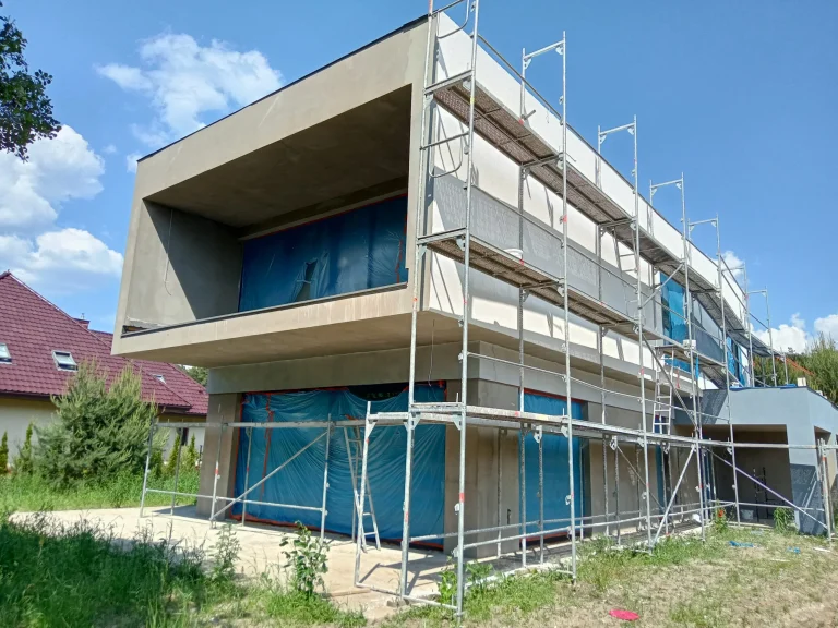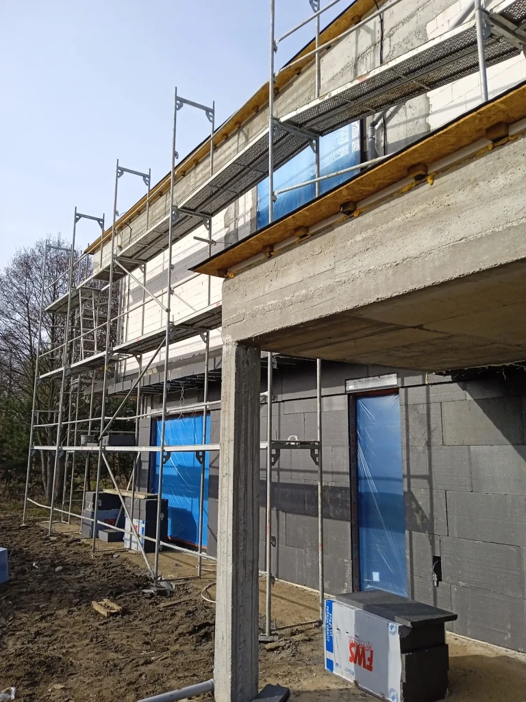 Za izolaciju vanjskih zidova korištena je grafitna polistirenska pjena debljine 20 cm, a zgrada je završena bijelom silikonskom žbukom.