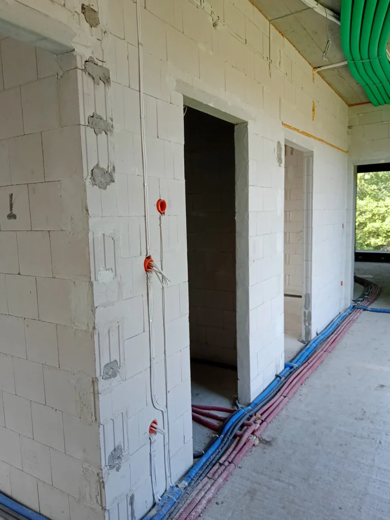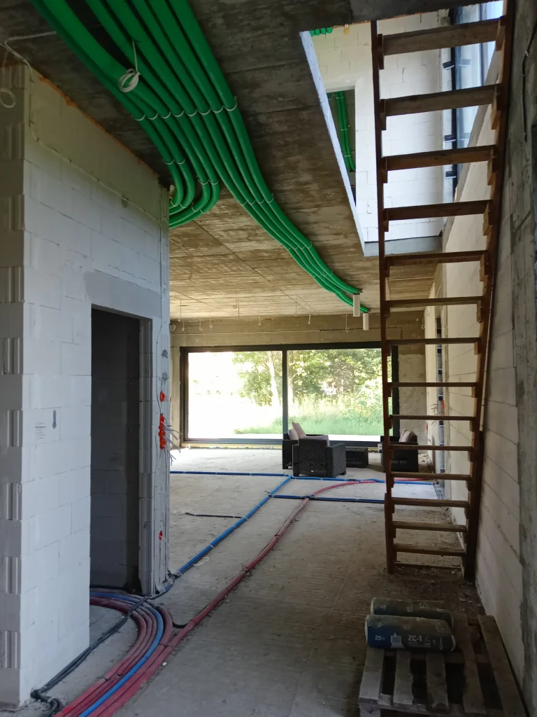 U zgradi je izvedena ugradnja električnih ugradbenih roleta s pogonom i topla ugradnja prozora uz upotrebu paropropusnih traka, toplih pragova izrađenih od XPS-a i klinaritnih temelja. Kuća je bila opremljena električnom, telekomunikacijskom, vodovodnom, rekuperacijskom i zračnom dizalicom topline. Izrađen je i vod za fotonaponsku instalaciju, instalaciju klimatizacije i nadzor.