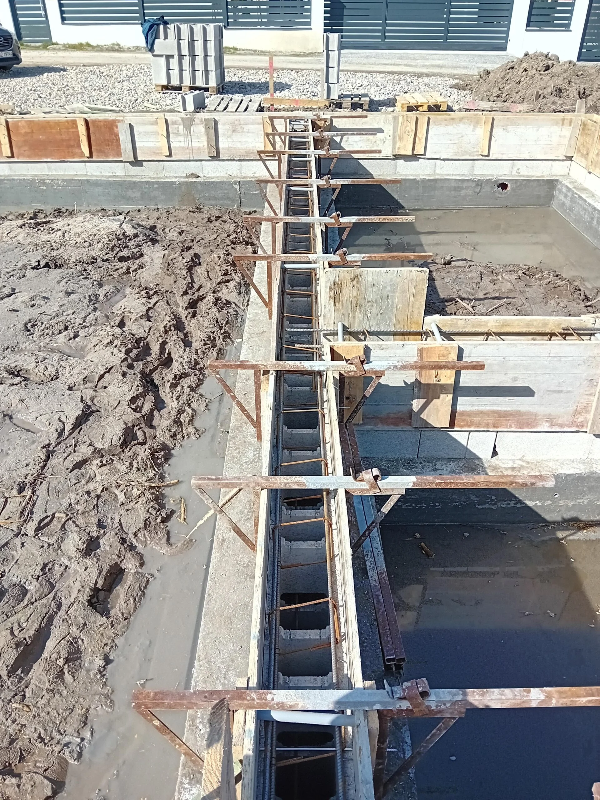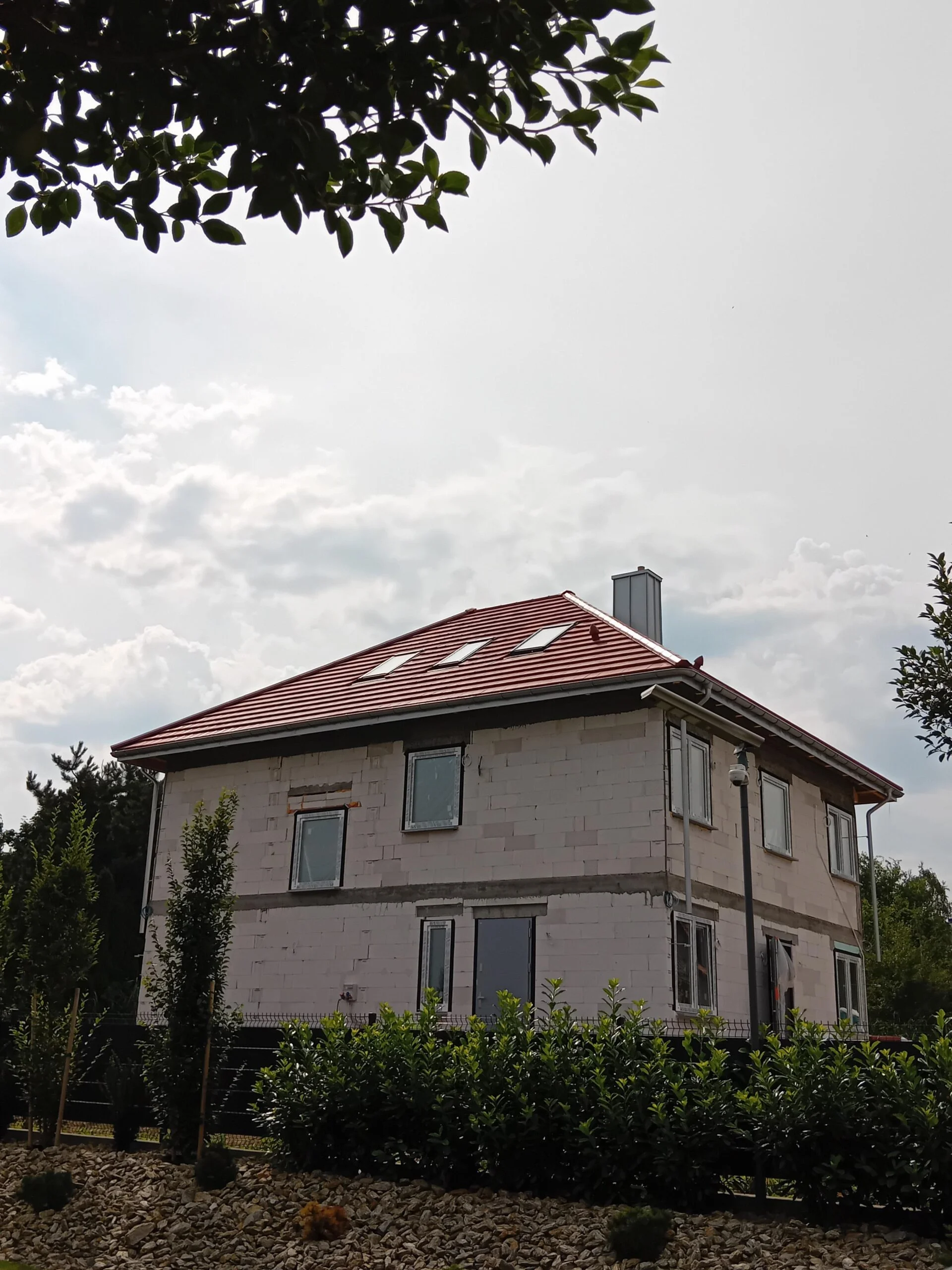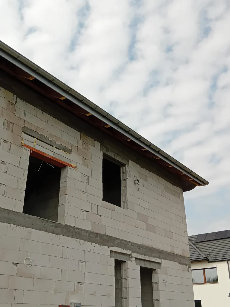 Kuća korisne površine 167 m2, podignuta na tradicionalnim temeljima, tj. armiranim temeljima i temeljnim zidovima. Nosivi i pregradni zidovi izrađeni su od celuloznog betona debljine 24 cm, odnosno 12 cm. Krovna konstrukcija izrađena je na tradicionalan način od mekog drva. Krov zgrade bio je prekriven ravnim betonskim crijepom u grafitnoj boji.