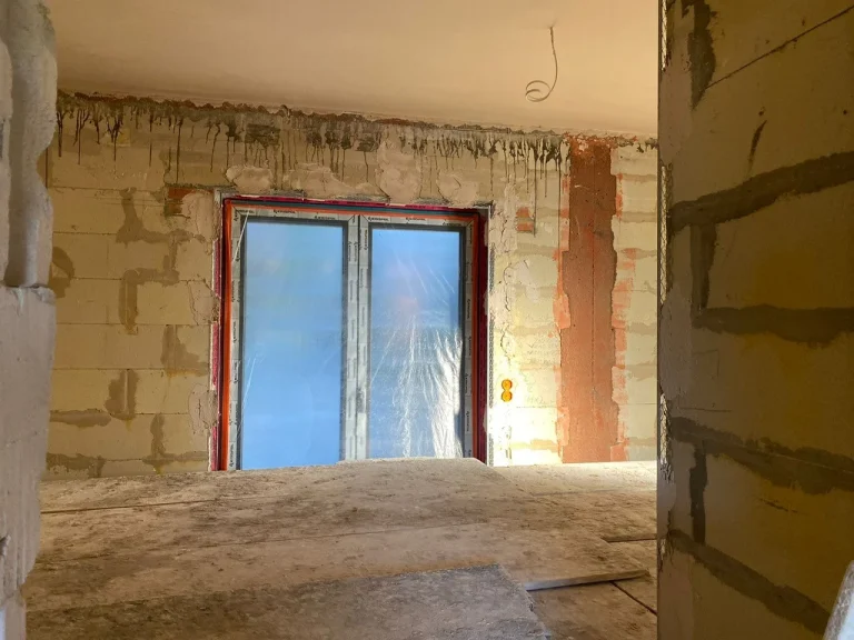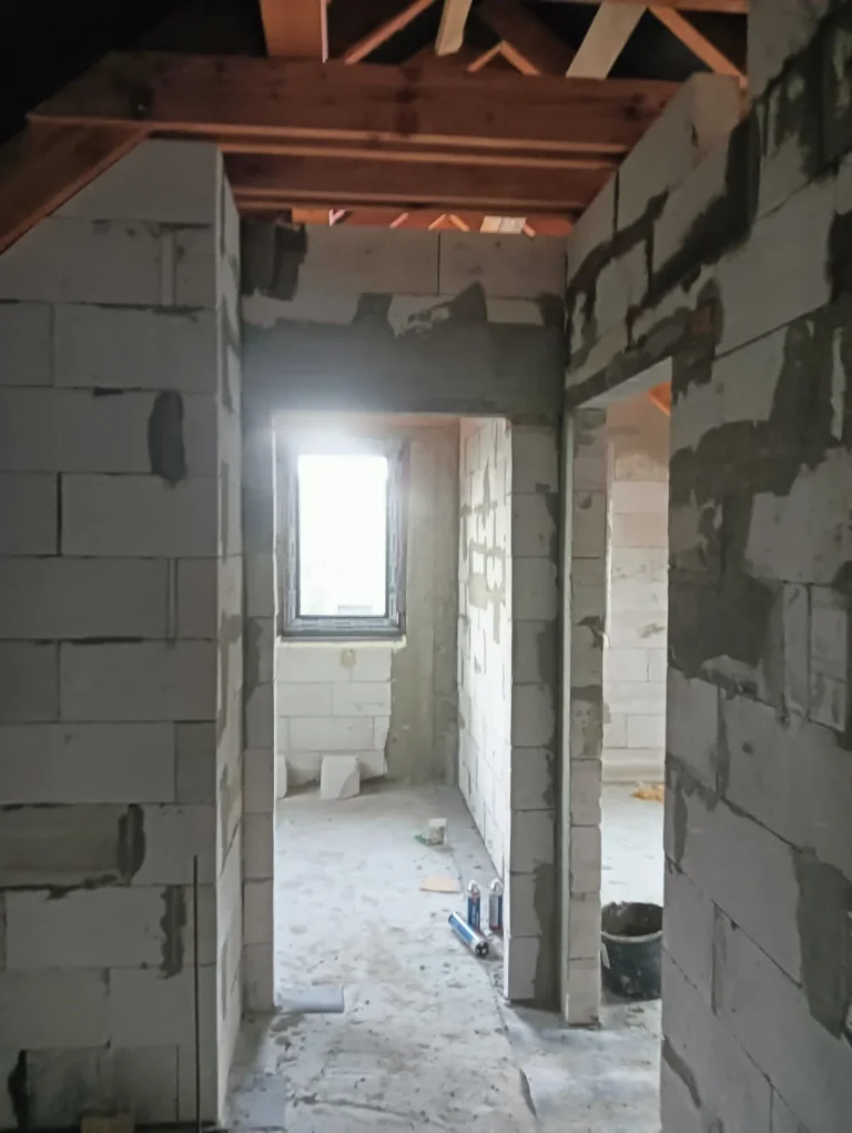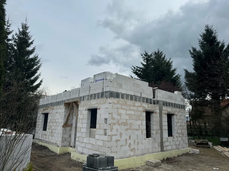 Nalazila se kuća površine 109 m2, izgrađena na tradicionalnim temeljima, tj. armiranim temeljima i temeljnim zidovima. Nosivi i pregradni zidovi izrađeni su od celuloznog betona debljine 24 cm, odnosno 12 cm. Krovna konstrukcija izrađena je na tradicionalan način od obrađenog mekog drva. Krov zgrade bio je prekriven ravnim betonskim crijepom u grafitnoj boji.