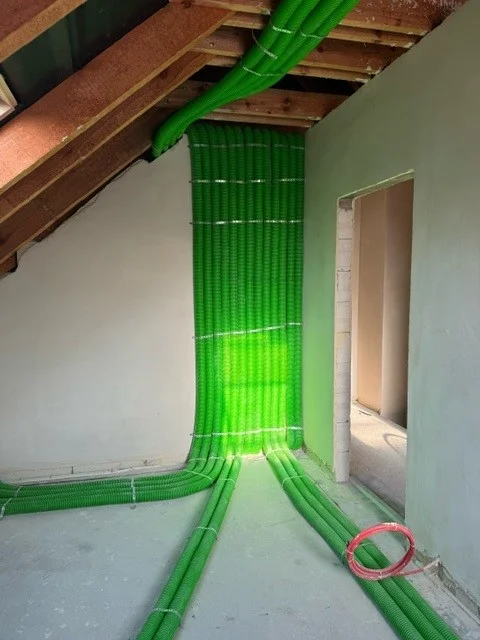 U sklopu tople ugradnje prozorskih okvira ugrađen je sustav trostrukih, energetski učinkovitih prozora sa 6-komornim profilima dubine 82 mm. Osim toga, ugrađene su žičane rolete. U zgradi je ugrađen električni, telekomunikacijski, vodovodni, električni sustav grijanja sa senzorima i termostatima te sustav rekuperacije. Osim toga, postavljen je vod za kasniju izgradnju fotonaponskih panela.